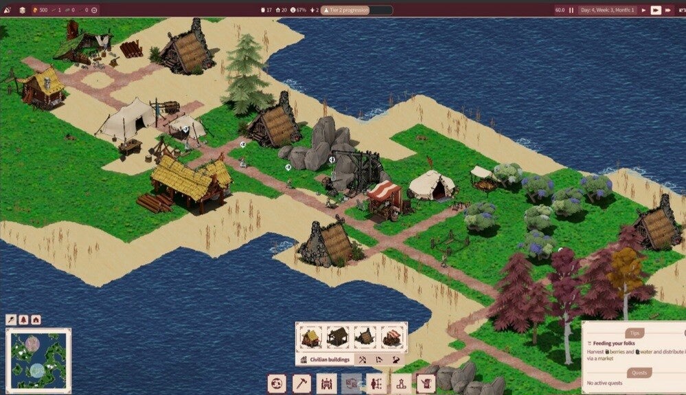 Baue und verwalte eine Siedlung und kümmere dich um deine Bewohner in diesem entspannenden Aufbauspiel mit simulierten Bürgern. Du musst Unterkünfte bereitstellen, eine stetige Versorgung mit Nahrung, Ressourcen und Waren gewährleisten und deine Bewohner vor den Gefahren der Natur schützen. Gleichzeitig solltest du auf ihr Wohlbefinden achten, damit sie glücklich, beschäftigt und sicher bleiben.
