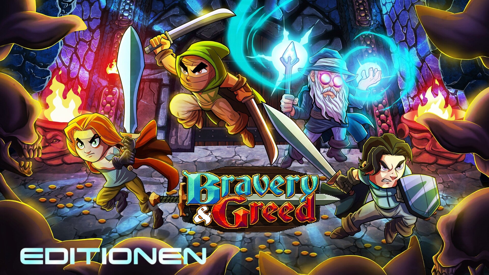 In Bravery and Greed kannst du immer weitere, aufregende Inhalte und spielverändernde Erweiterungen freischalten, indem du mit Gold Level aufsteigst. Schnapp dir gierig Münzen und plündere Truhen, stiehl Taschen voller Gold, wenn du Verbündete wiederbelebst oder renn als erstes los und schnapp die Beute nach einem epischen Kampf. Reich werden oder sterben!