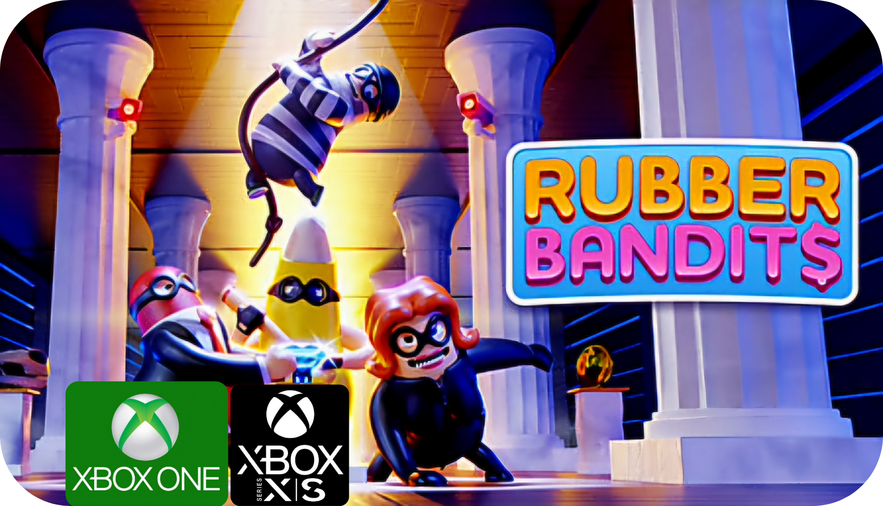 Rubber Bandits befördert 1-4 Spieler in einen wilden Party-Brawler, bei dem sich alles darum dreht, so viel wie möglich zu stehlen, zu zerschmettern und zu erbeuten! Mach dich auf witzige physikbasierte Kämpfe mit irren Waffen und einer riesigen Auswahl krimineller Charaktere gefasst. Weiche tödlichen Fallen aus, schlage rivalisierende Banditen und flüchte vor den Cops, um den perfekten Überfall durchzuziehen. Vergiss im Eifer des Gefechts aber nicht, die Beute einzusacken!