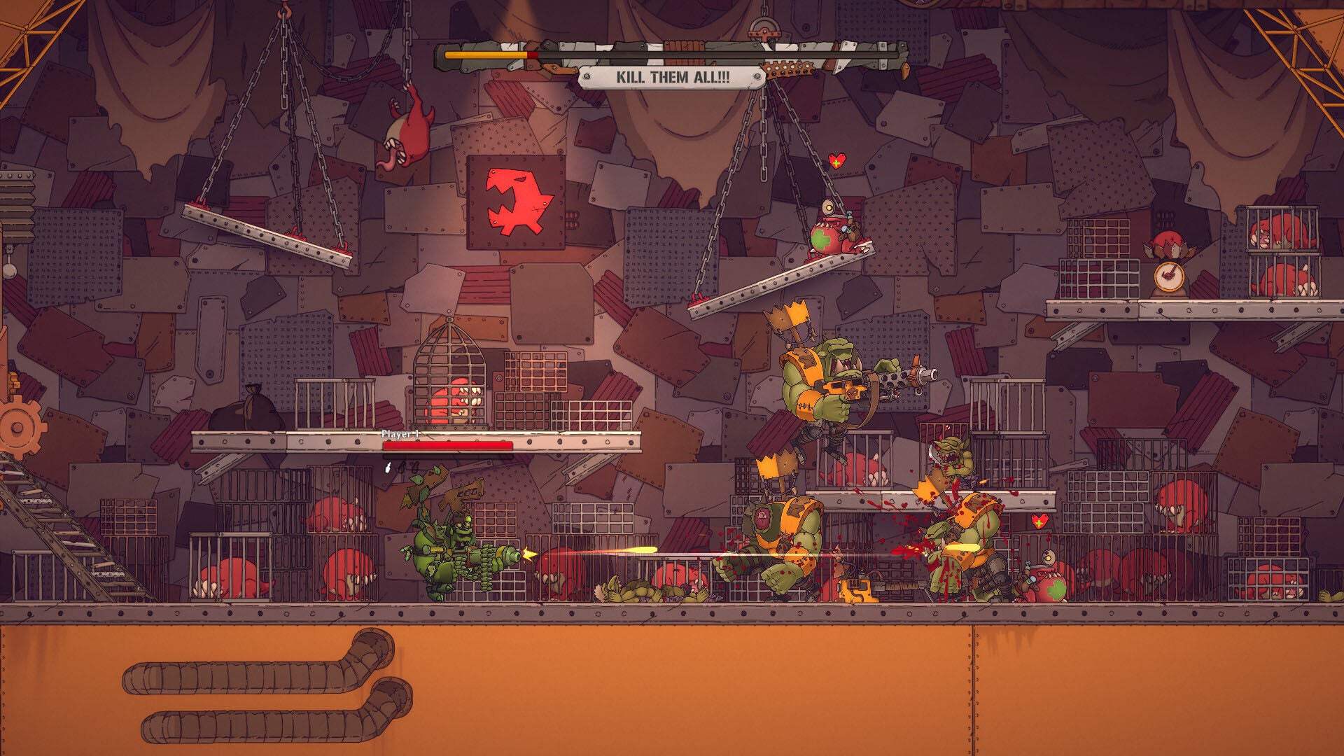 Warhammer 40.000: Shootas, Blood & Teef ist ein handgezeichnetes 2D-Action-Abenteuer, das dich auf eine wilde Reise mit Dakka, Gore und Explosionen mitnimmt! Schlage dir den Weg durch die Schwarmstadt Luteus Prime, kämpfe gegen Menschen, Orks und Symbiontenkultisten und hol dir schließlich deinen wunderbaren Haar-Squig aus den Händen des Waaaghbosses Gutrekka zurück!