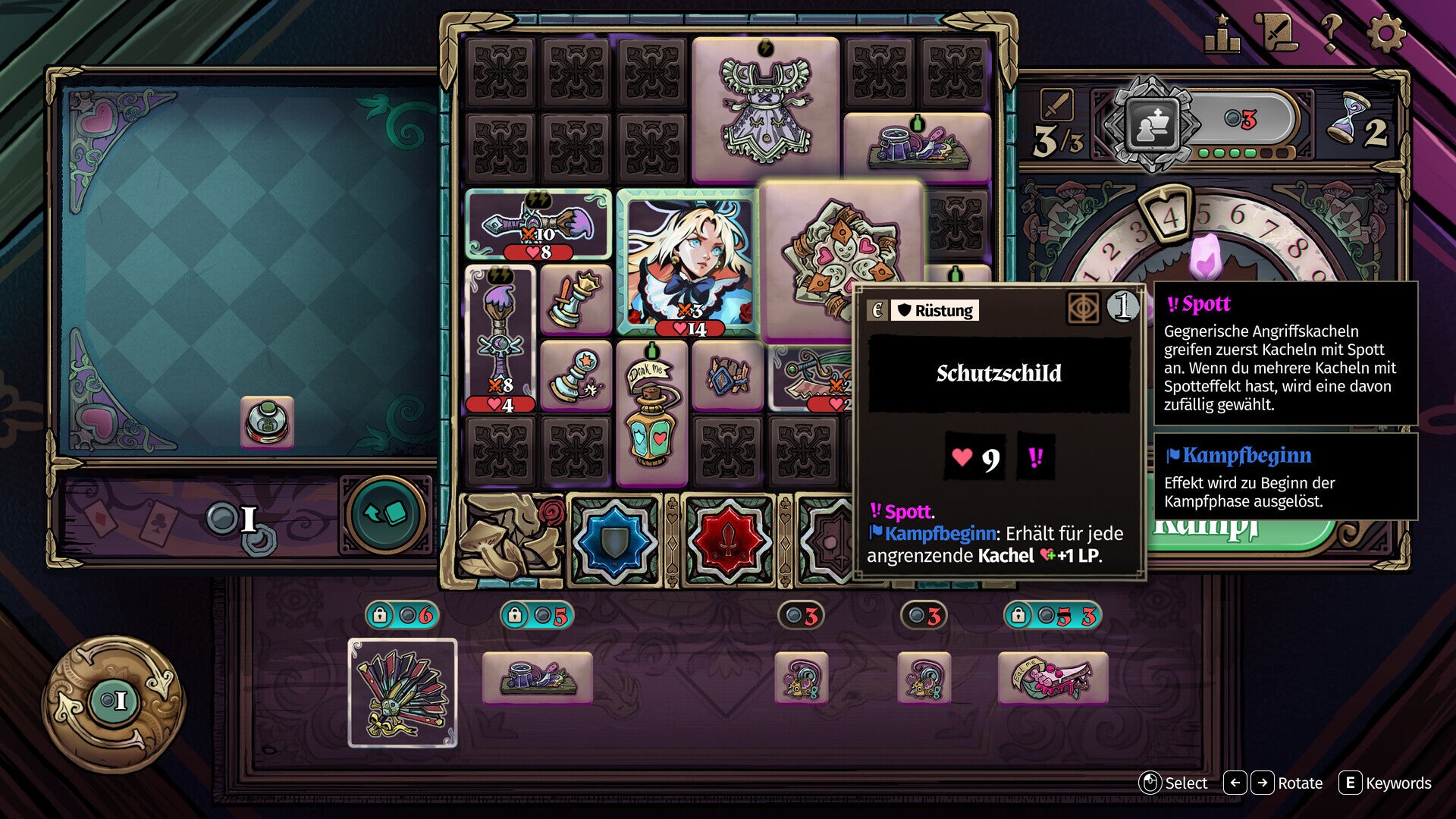 In jeder Turnierrunde verwaltest du dein rasterbasiertes Inventar: Entscheide, welche Kacheln du kaufst, verbesserst, platzierst oder verkaufst – und schmiede taktische Synergien, die sich in cleveren Effektkaskaden entfalten und deinen Gegner ins Schwitzen bringen!