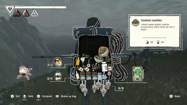 Verwalte deine Ressourcen, um den langen Aufstieg zu überleben: Haken, Kreide, Fingertape, aber auch Essen, Wasser und Medikamente. Schlage Biwaks auf und erkunde den Berg, um Vorräte zu finden und den Gipfel zu erreichen.